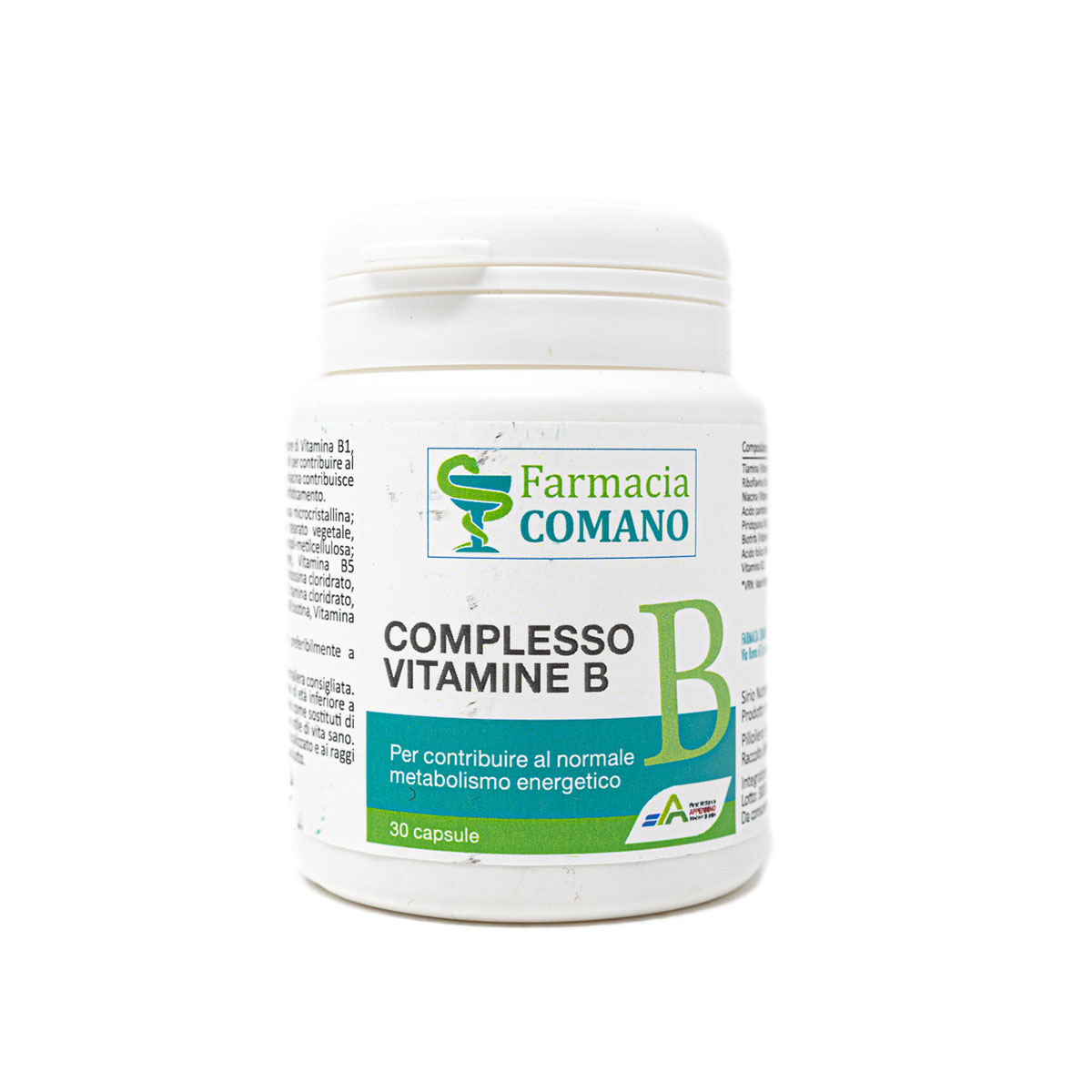 Agente di carica: cellulosa microcristallina; antiagglomeranti: talco, magnesio stearato vegetale, Costituente della capsula: idrossi-propil-metilcellulosa; Vitamina B3 o PP (Niacinamide), Vitamina B5 (Calciopantotenato), Vitamina B6 piridossina cloridrato, Vitamina B2 riboflavina, Vitamina B1 tiamina cloridrato, Vitamina B9 (acido folico), Vitamina B8 biotina, Vitamina B12 cianocobalamina. No glutine. No zuccheri aggiunti