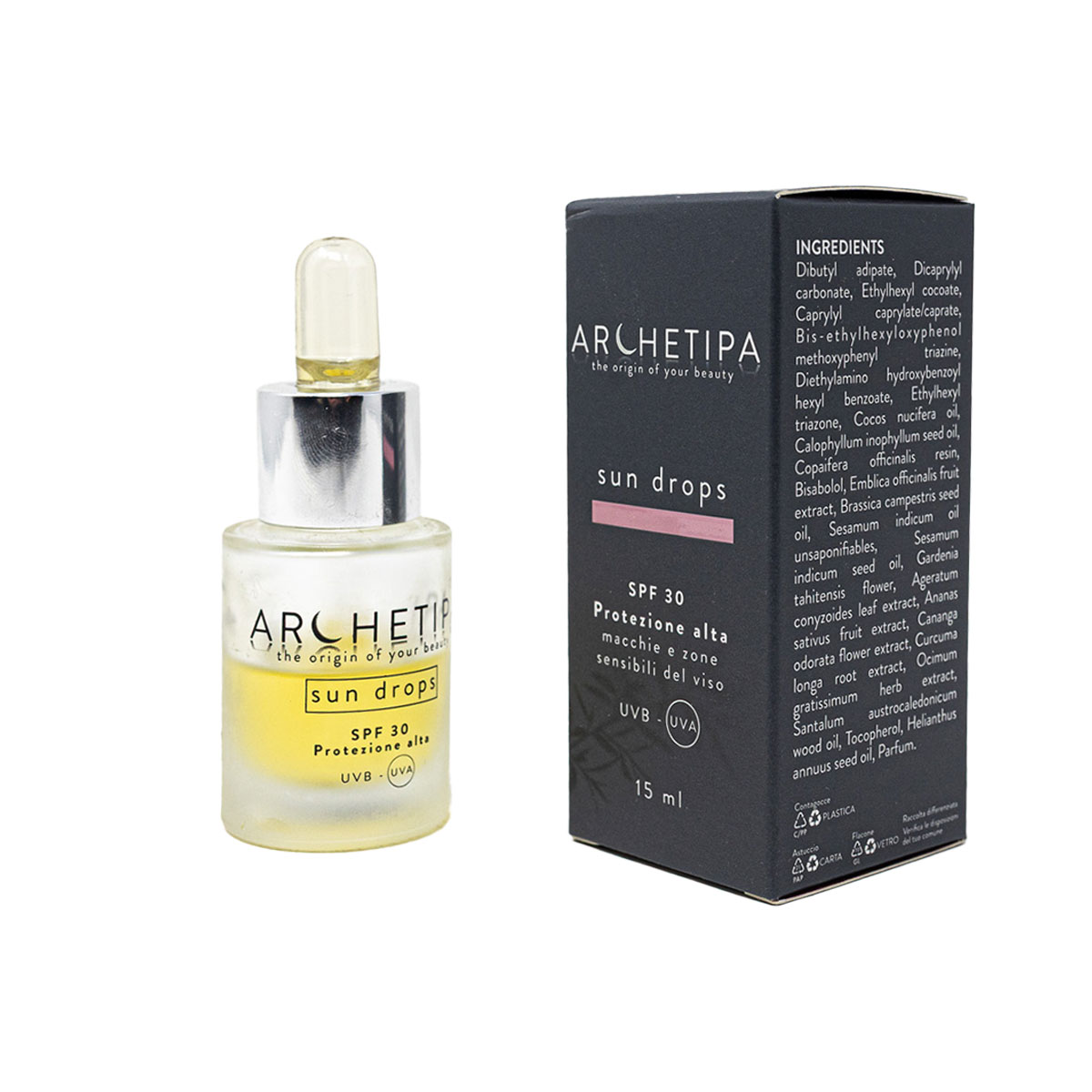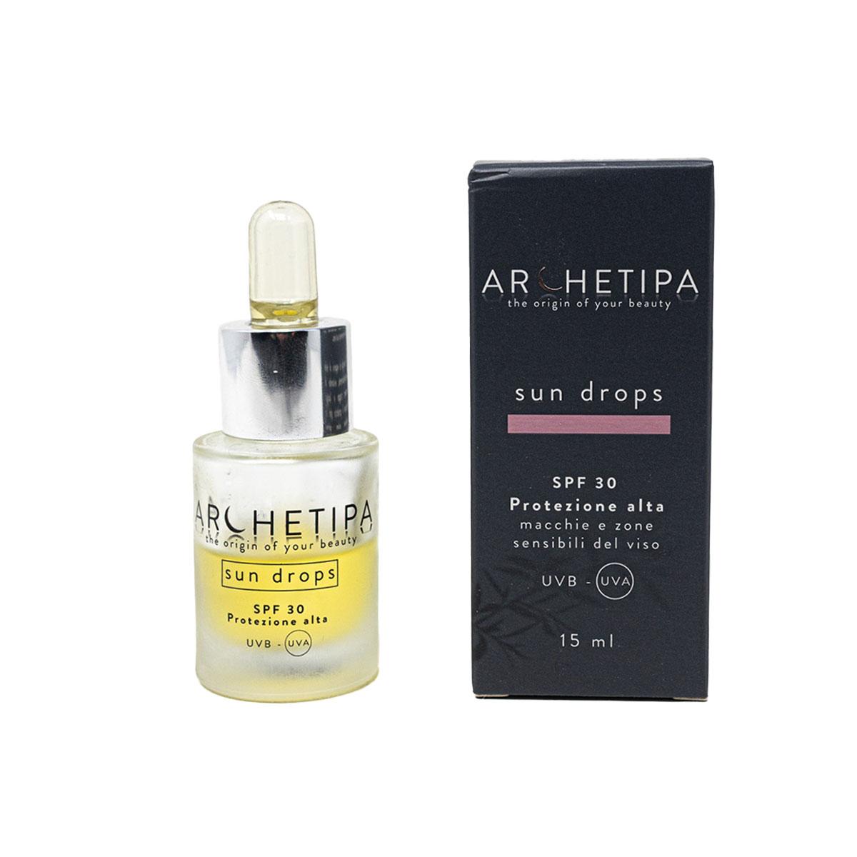 In caso di macchie o zone sensibili all’esposizione solare, applicare Archetipa sun drops puro sull’area da proteggere. È possibile emulsionare 2 gocce di Archetipa sun drops direttamente con Archetipa dayTime cream stendendo poi uniformemente sul viso.